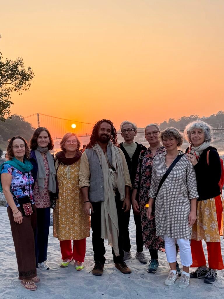 Alongside yoga and bhakti, the retreat is held at Shanti Makaan, a boutique Ayurvedic therapy centre in the heart of Swargashram (Jonk Village) — within walking distance of scenic river paths, temples, caves, and evening aartis that we often visit together.